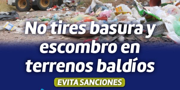 Evita sanciones, no deposites basura o escombro en viviendas abandonadas y terrenos baldíos.