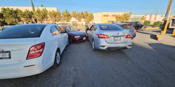 Chihuahua, Chih., Un aparatoso choque que involucró a cuatro vehículos se registró en el cruce de la lateral del bulevar Ortiz Mena y la avenida Trasviña y Retes. El incidente ocurrió cuando el conductor de un Nissan Tsuru, que circulaba…