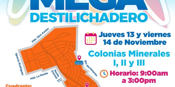 Atención vecinos de las colonias Minerales I, II y III este jueves 13 y viernes 14 llegará el Mega Destilichadero