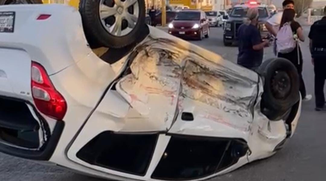 Chihuahua.— Durante está mañana se registró un aparatoso accidente vehicular en el cruce de la avenida Quinta Real y Paseos del Frisón, en la colonia Camino Real, donde un choque terminó con la volcadura de uno de los vehículos involucrados. Afortunadamente, no se reportaron personas lesionadas.
