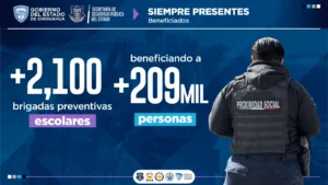 Como parte de estas acciones, se han conformado 2 mil 122 brigadas preventivas escolares, beneficiando a más de 23 mil 300 personas, además de implementar el modelo especializado EN-CLA-VE, enfocado en adolescentes en situación de riesgo, con énfasis en habilidades, prevención de violencia, adicciones y delitos en entornos físicos y digitales.