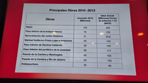Uno de los principales señalamientos fue el presunto sobrecosto en la gasa del Rélice y Periférico de la Juventud, cuya inversión se estima en 400 millones de pesos, una cifra que calificaron de “exorbitante e injustificable”.