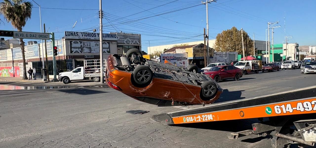 Según los reportes, ambos vehículos colisionaron metros antes de llegar al cruce, lo que provocó que el Nissan Sentra volcara sobre su toldo. Afortunadamente, los ocupantes no sufrieron heridas y solo se registraron daños materiales en ambos automóviles.
