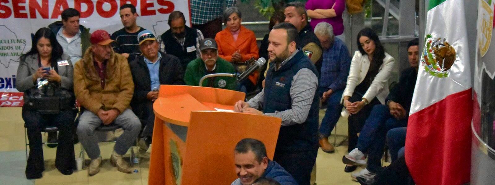 Chihuahua, Chih., Durante un encuentro con productores del campo realizado en el Congreso del Estado de Chihuahua, el coordinador de los diputados del PRI Arturo Medina aseguró que está dispuesto a unirse a las movilizaciones que los campesinos consideren necesarias para frenar la reforma a la Ley de Aguas impulsada por el oficialismo. Señaló que la propuesta desvincula el agua de la tierra y pone en riesgo la productividad, el valor y la certidumbre del medio rural especialmente en una entidad como Chihuahua que enfrenta condiciones climatológicas adversas para la producción.