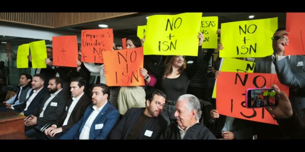 Se manifiestan empresarios en el Congreso por el aumento al ISN