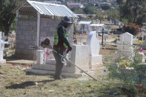 Lo anterior, con el objetivo de que aquellos ciudadanos que acudan en el Día de Muertos a visitar a sus seres queridos, encuentren los cementerios municipales limpios y bien atendidos, de donde, al momento, se han retirado un estimado de 23.5 toneladas de maleza y basura.
