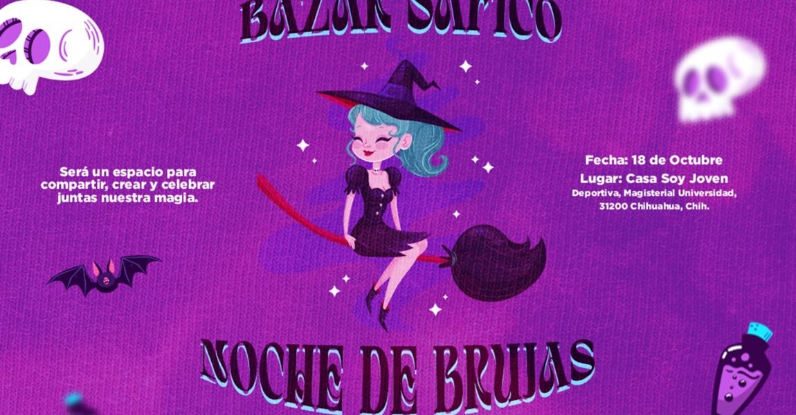 Chihuahua, Chih.- Este sábado 18 de octubre, la Colectiva Sáficas del Norte llevará a cabo el Bazar Sáfico Edición Noche de Brujas, un encuentro que busca visibilizar el talento, la creatividad y la fuerza de las mujeres de la disidencia sexual en Chihuahua. El evento se realizará de 17:00 a 22:00 horas en Casa Soy Joven, ubicada dentro de Ciudad Deportiva.