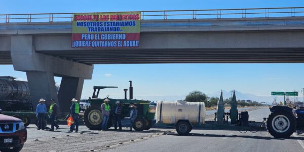 Agricultores bloquean carretera en Aldama por reforma a la Ley del Agua