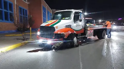 Falla mecánica en grúa provoca choque y congestión vial en la Teófilo Borunda Sur