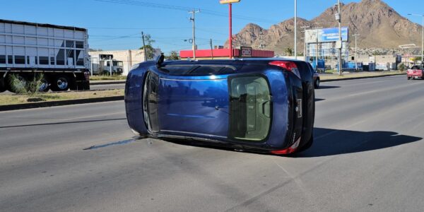 Chihuahua, Chih., Un aparatoso accidente se registró en el cruce de las calles Estrada Bocanegra y Deza y Ulloa, en la colonia San Felipe Viejo, donde dos vehículos particulares se impactaron y uno de ellos terminó volcado. A pesar de…