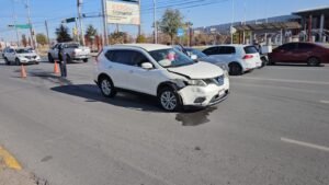 Chihuahua, Chih., Un choque se registró sobre la avenida Tecnológico en sentido de norte a sur, a la altura del cruce con la calle Corregidora, frente al Centro de Convenciones y Exposiciones de Chihuahua.