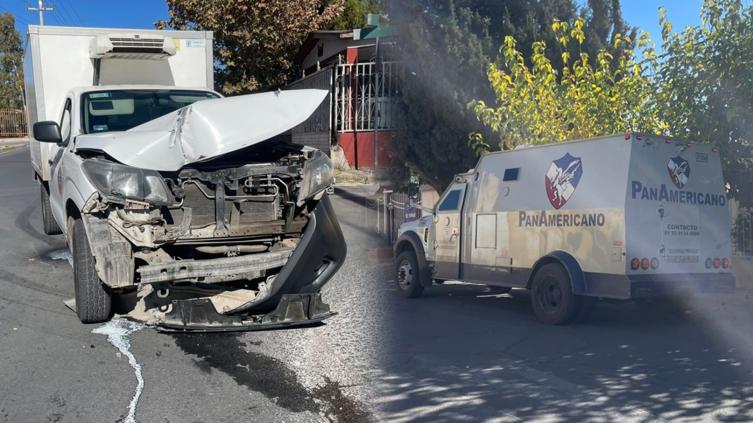 Una camioneta de carga perteneciente a la empresa Sello de Oro impactó un camión de valores de la empresa Panamericano en el cruce de la avenida Washington con la calle Brasilia. El accidente no dejó personas lesionadas, aunque sí se reportaron daños materiales en ambos vehículos.