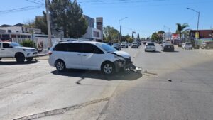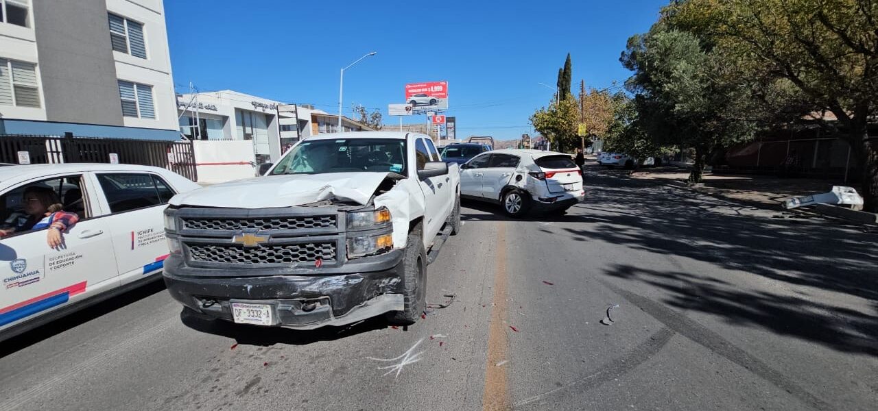 Chihuahua, Chih., Un fuerte choque múltiple se registró sobre la avenida Visión del Norte a la altura del cruce con Nicolás Estrada Bocanegra en la colonia San Felipe. El incidente ocurrió cuando la conductora de una camioneta Kia Sportage circulaba de oeste a este y avanzó pese a tener la luz roja del semáforo.