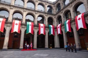 La Ceremonia Oficial de Bienvenida se llevó a cabo en el Patio de Honor de Palacio Nacional, donde se entonaron los himnos nacionales de México y Canadá. Posteriormente se realizó la fotografía oficial del encuentro, marcando el inicio formal de las actividades diplomáticas.