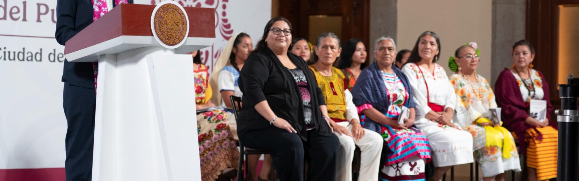 En la conferencia matutina, mujeres de los pueblos náhuatl, mazateco, otomí, p’urhépecha, mixe popoluca, chichimeca guachichil, yokot´an, maya y Pitahaya, leyeron la Cartilla de lo Derechos de las Mujeres que ha sido traducida a 35 lenguas originarias.