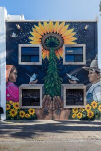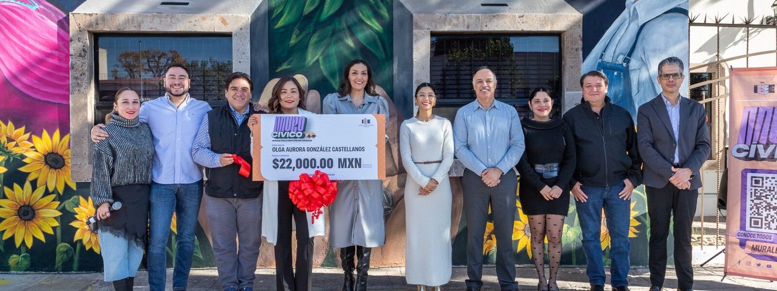 El mural lleva por nombre Votos que florecen y es obra de la artista Olga Aurora González Castellanos. La pieza fue realizada en el exterior de la Casa de Consejerías del Instituto, ubicada en la calle 23a y Bustamante, en la colonia Altavista, donde ahora forma parte del entorno urbano como un mensaje visual de participación cívica.
