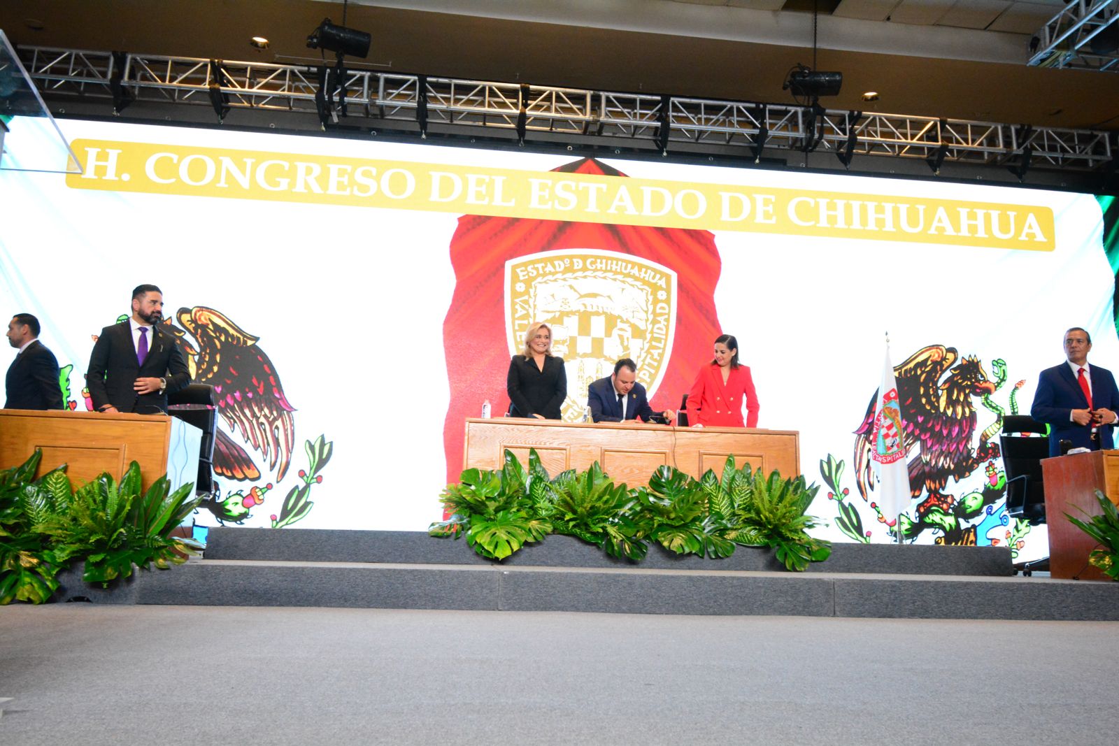 El diputado procedio a señalar quienes son los diputados que conforman la mesa directiva mencionando en primera instancia su encargo como diputado presidente, en el recinto se cont+o con la presencia de la Gobernadora del Estado de Chihuahua.