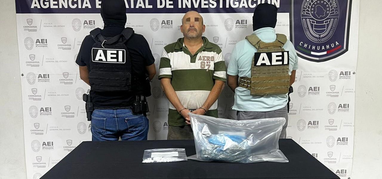 Elementos de la Agencia Estatal de Investigación del Centro de Operaciones Estratégicas de la Fiscalía de Distrito Zona Norte, detuvieron en flagrancia a quien se identificó como Tomás Alonso V. S., por encontrarse en posesión de drogas en la colonia Hacienda de las Torres, de Ciudad Juárez.