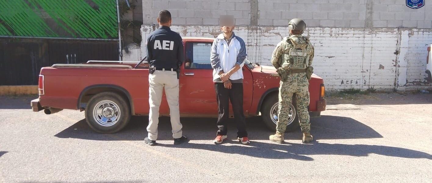 La detención de la citada persona se efectuó en las calles Adolfo López Mateos y Niños Héroes de la colonia Guadalupe Victoria, en donde los agentes revisaron el vehículo que conducía de la marca Chevrolet, línea S-10, modelo 1991, color rojo, con placas del estado de Chihuahua.