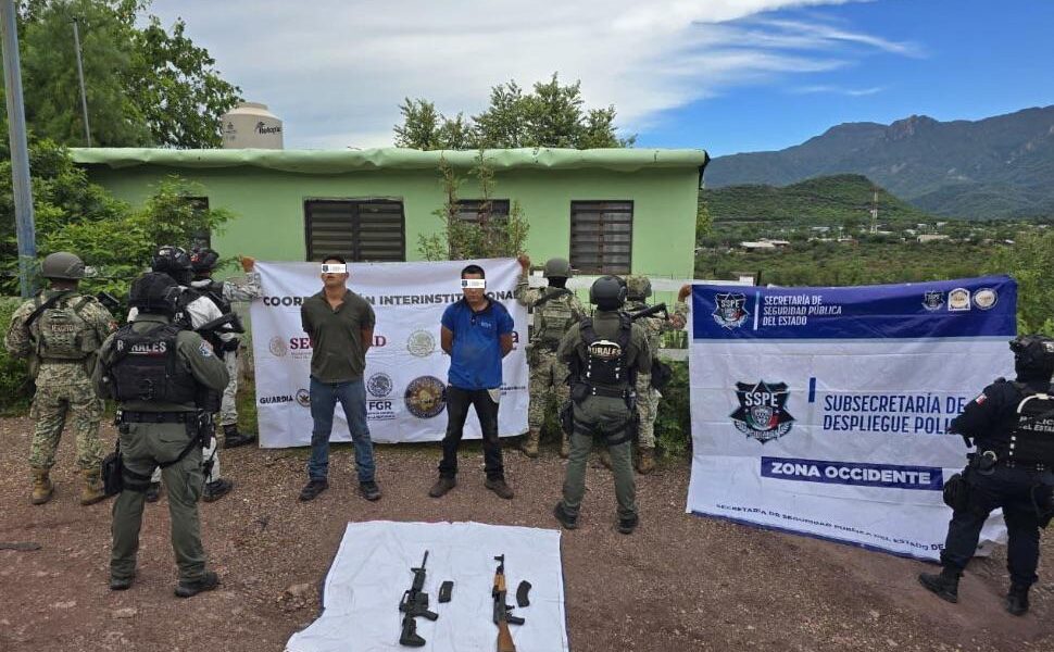 Posteriormente, en una segunda intervención en la misma zona, fueron detenidos Sergio “N”, de 23 años, y Eubcedio “N”, de 26 años. Ambos se encontraban en posesión de dos armas largas: un fusil calibre 7.62×39 mm y un fusil calibre 5.56 mm, cada uno abastecido con un cargador de 30 cartuchos.