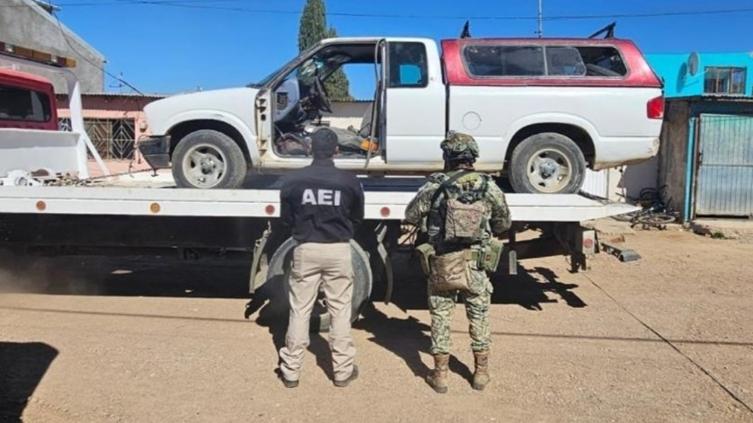 La intervención se realizó en cumplimiento de una orden emitida por un Juez de Control del Distrito Judicial Benito Juárez, como parte de una investigación por el delito de narcomenudeo. Dentro de la finca, las autoridades aseguraron un envoltorio con 1.23 gramos de metanfetamina y la camioneta Chevrolet S-10, color blanco, con reporte de robo vigente desde el 7 de noviembre de 2025.