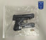 En la inspección se encontró dentro la mochila que traía consigo, una pistola calibre .9 milímetros, abastecida con un cartucho útil, además, una bolsa de plástico que contenía 16 envoltorios de una sustancia con las características del cristal, con un peso de 12 gramos.