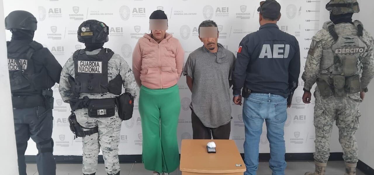 En seguimiento a una investigación por delitos contra la salud, elementos de la Agencia Estatal de Investigación, con apoyo del Ejército Mexicano y la Guardia Nacional, detuvieron a una pareja en posesión de droga en una vivienda de la calle Alfonso Reyes y Francisco I. Madero de colonia Reforma, en la ciudad de Cuauhtémoc.