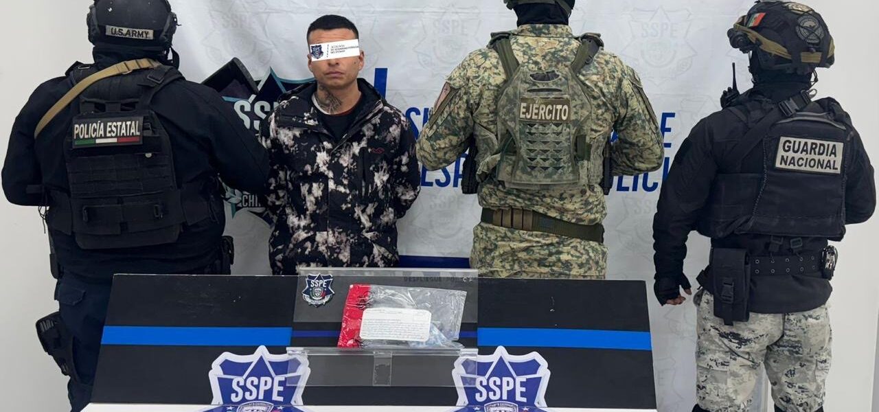 Juárez, Chih., La Secretaría de Seguridad Pública del Estado informó sobre el aseguramiento de un hombre en Ciudad Juárez que portaba 110 envoltorios de presunta droga, en un operativo realizado en coordinación con la Guardia Nacional y el Ejército Mexicano.