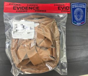 – Una bolsa de plástico transparente que contiene una sustancia granulada con las características de la droga denominada cristal, con un peso aproximado de 28.28 gramos.