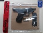 Como resultado de la intervención policial efectuada hoy lunes en la calle Río Rihn de la colonia Riberas de Sacramento, aseguraron al citado masculino, un arma de fuego tipo pistola, color negro con la leyenda “Made In Austria Glock Inc. SMYRNAGA”.