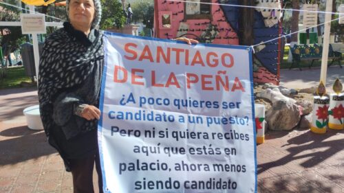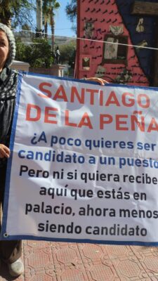 Chihuahua, Chih.- Dionisia Chaparro Flores se manifestó este miércoles frente a Palacio de Gobierno, donde solicitó de manera directa ser atendida por el secretario general de Gobierno, Santiago de la Peña, ante la falta de respuesta a su denuncia por el presunto despojo de su vivienda.