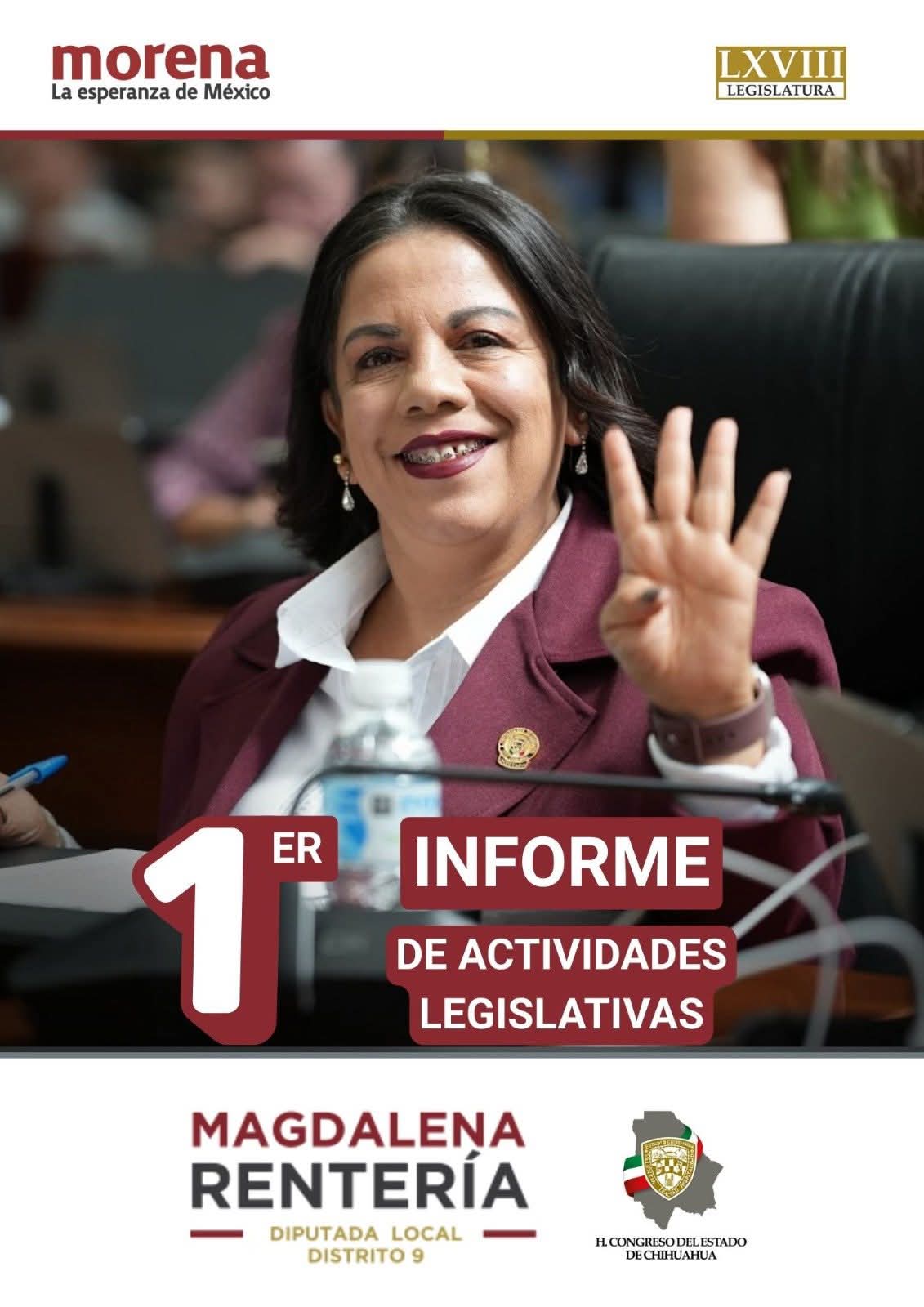 Chihuahua.- La diputada local Magdalena Rentería presentó su informe correspondiente al primer año de trabajo legislativo en la LXVIII Legislatura del Congreso del Estado de Chihuahua.