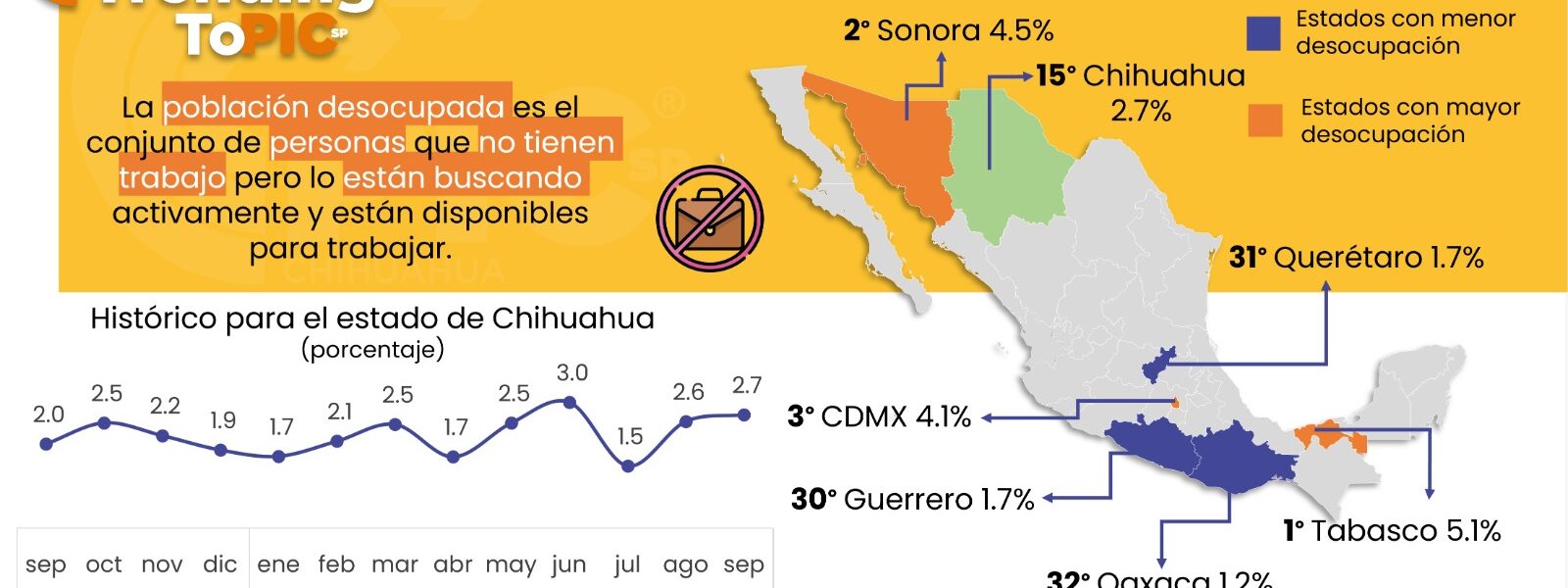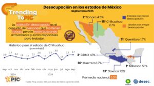 De acuerdo con la Encuesta Nacional de Ocupación y Empleo (ENOE) correspondiente a septiembre de 2025, en México existen 1 millón 849 mil 726 personas en situación de desocupación. El grupo con mayor incidencia se concentra entre los 25 y 44 años, que representa el 49 por ciento del total. Le siguen las personas de 15 a 24 años con el 33 por ciento, mientras que el 17 por ciento pertenece al rango de 45 a 64 años. En menor proporción, el 1 por ciento corresponde a adultos mayores de 65 años o más.