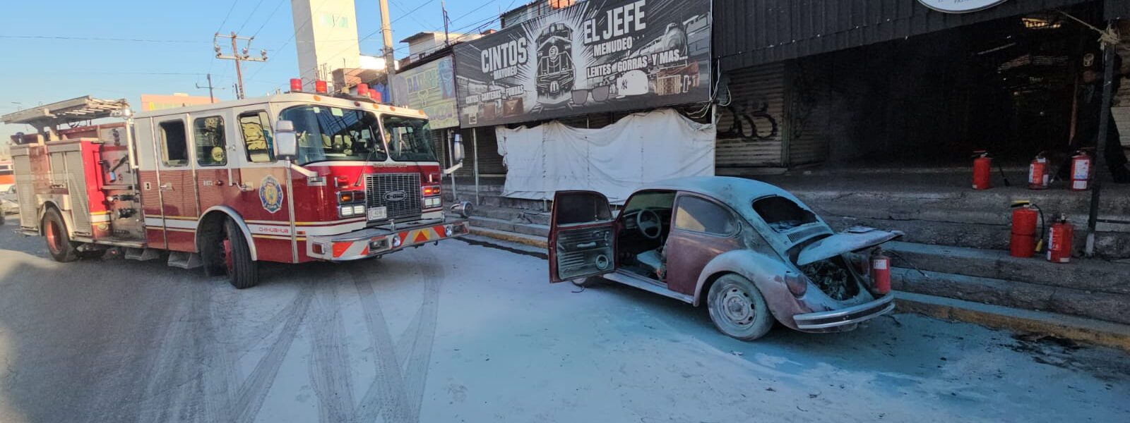 Falla eléctrica provoca incendio en un vochito en la Gómez Morín