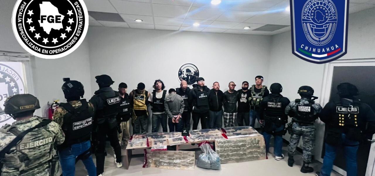 Chihuahua, Chih., La Fiscalía Especializada en Operaciones Estratégicas informó que el miércoles 26 de noviembre se detuvo a diez personas en flagrancia en El Sauz, municipio de Chihuahua, por delitos relacionados con la Ley General de Armas de Fuego y Explosivos, contra la salud, tentativa de homicidio y daños. La acción se realizó mediante el Grupo de Proyectos Especiales en coordinación con el Ejército Mexicano.
