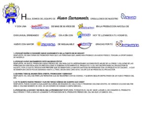 Chihuahua, Chih., Huevo Sacramento, uno de los principales productores locales de huevo en el estado, lanzó una campaña de agradecimiento y lealtad a la comunidad chihuahuense, enfocada en exponer las injusticias que enfrentan los productores locales frente al huevo importado.