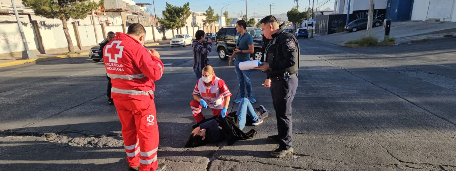 Chihuahua, Chih., Una joven de alrededor de 25 años resultó lesionada la tarde de este martes tras ser atropellada por un vehículo Chevrolet Aveo cuando cruzaba un paso peatonal en el cruce de la avenida Juan Escutia y el bulevar El Saucito, en la ciudad de Chihuahua.