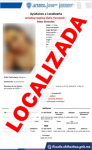 Chihuahua, Chih., Derivado de la pronta activación del Protocolo Alba, fue localizada sana y salva la menor de 17 años de edad e iniciales A.S.A.F., quien contaba con reporte de ausencia interpuesto ante esta representación social ayer 21 de octubre.