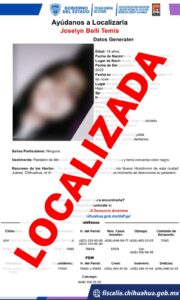 Ciudad Juárez, Chih., La Fiscalía Especializada en Atención a Mujeres Víctimas del Delito por Razones de Género y a la Familia en la Zona Norte, localizó sanas y salvas a una mujer adulta y a una adolescente que contaban con reporte de ausencia, interpuestos por sus familiares el 14 de noviembre de 2025, en Ciudad Juárez.