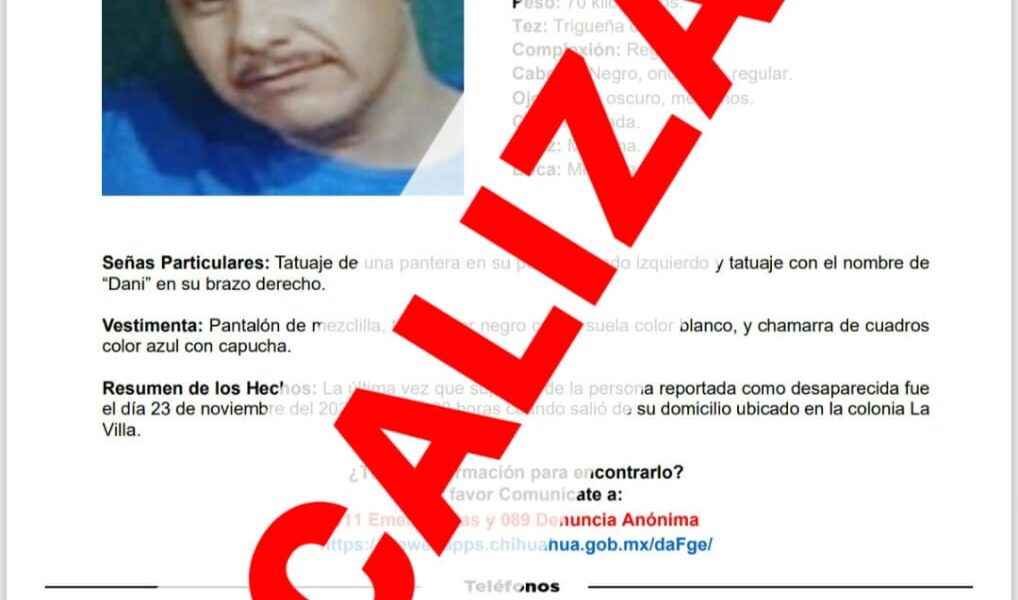 La Fiscalía General del Estado refrenda su compromiso de realizar las acciones necesarias para dar con el paradero de todas las personas con reporte de ausencia y/o no localización, a fin de dar certeza a sus familias.