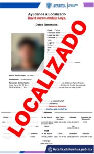 Chihuahua, Chih., La Fiscalía General del Estado informó la localización con vida de dos personas que contaban con reporte de ausencia en la ciudad de Chihuahua, como resultado de los operativos de búsqueda implementados por la Unidad de Investigación de Personas Ausentes.