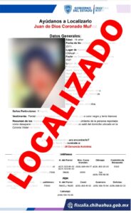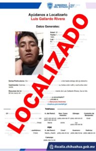 Asimismo, mediante la activación de los protocolos de búsqueda se logró ubicar a Luis G R de 33 años de edad, quien informó a las autoridades por medio de una llamada telefónica que actualmente se encuentra trabajando fuera de la ciudad de Chihuahua.