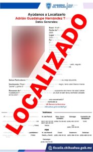 Chihuahua, Chih., La Fiscalía de Distrito Zona Centro informó sobre la localización con vida de dos menores de edad y un joven de 18 años, quienes contaban con reportes de ausencia en la ciudad de Chihuahua. Las acciones se realizaron a través de la Unidad de Investigación de Personas Ausentes y no Localizadas.