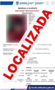 Asimismo, una tercera menor identificada con las iniciales I.A.M.A., de 15 años de edad, fue localizada en la colonia Vista Cerro Grande. En este caso, la adolescente se había ausentado el 24 de marzo en la colonia Esperanza, y su desaparición fue reportada por familiares un día después.