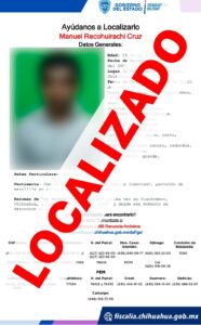 Cuauhtémoc . – La Fiscalía de Distrito Zona Occidente, a través de la Unidad de Investigación de Personas Desaparecidas y/o Ausentes, localizó sanos y salvos los menores identificados con las iniciales I. P.B., y M: R. C., de 14 y 16 años de edad, cuya ausencia fue reportada ayer martes en el municipio de Cuauhtémoc.