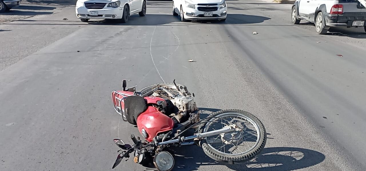 Chihuahua, Chih., Un accidente vial se registró sobre la avenida Palestina cuando un motociclista sufrió un fuerte impacto contra un automóvil al intentar incorporarse este último a la avenida. El conductor de la motocicleta Honda tipo cargo circulaba en sentido de oeste a este cuando un Chevrolet Aveo blanco se atravesó en su camino, provocando la colisión.