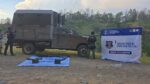 El operativo fue encabezado por 19 policías estatales de la Zona Occidente, quienes, con apoyo de drones y a bordo de seis unidades oficiales, recorrieron una brecha de difícil acceso donde se localizó una camioneta tipo “Monstruo”, marca Ford F-450, modelo 2019, color negro metálico, con blindaje artesanal y reporte de robo.
