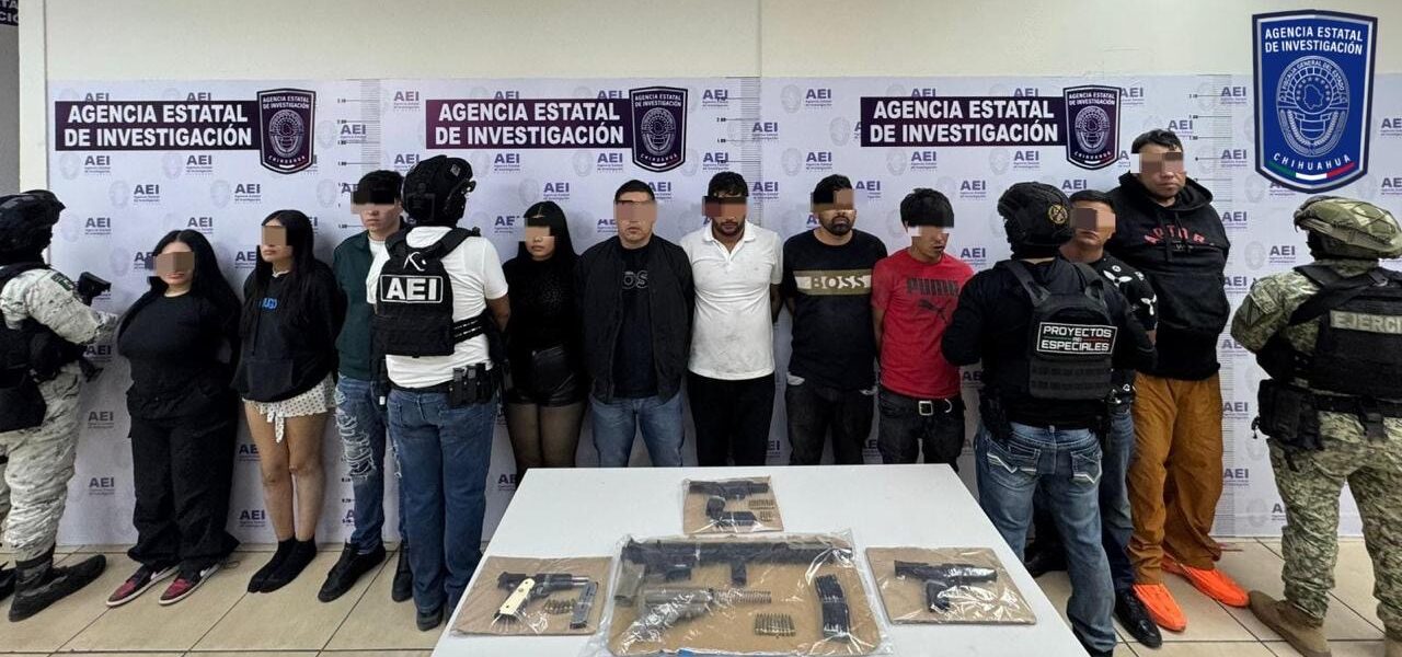 Juárez, Chih., Un operativo conjunto realizado por la Agencia Estatal de Investigación con apoyo del Ejército Mexicano y la Guardia Nacional permitió la detención de diez personas en flagrancia en la colonia Bellavista de Ciudad Juárez. Durante la intervención se localizaron diversas armas de fuego, envoltorios con droga y dos vehículos de alta gama que quedaron bajo resguardo de las autoridades.