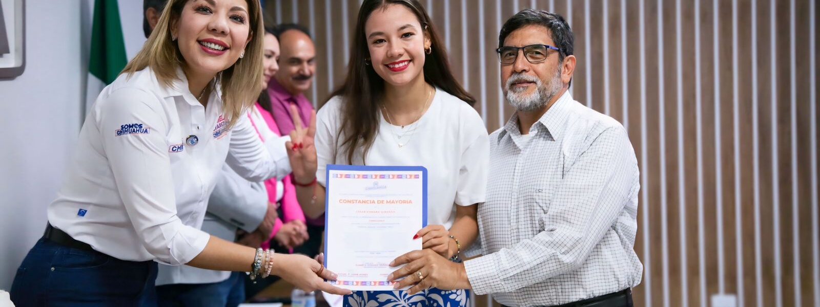 Acompañada por las y los integrantes de la Comisión Estatal de Procesos Electorales, Daniela Álvarez entregó personalmente las constancias de mayoría y precisó que las y los nuevos dirigentes entrarán en funciones una vez que la Comisión Permanente Nacional apruebe el paquete de elección del Estado de Chihuahua.