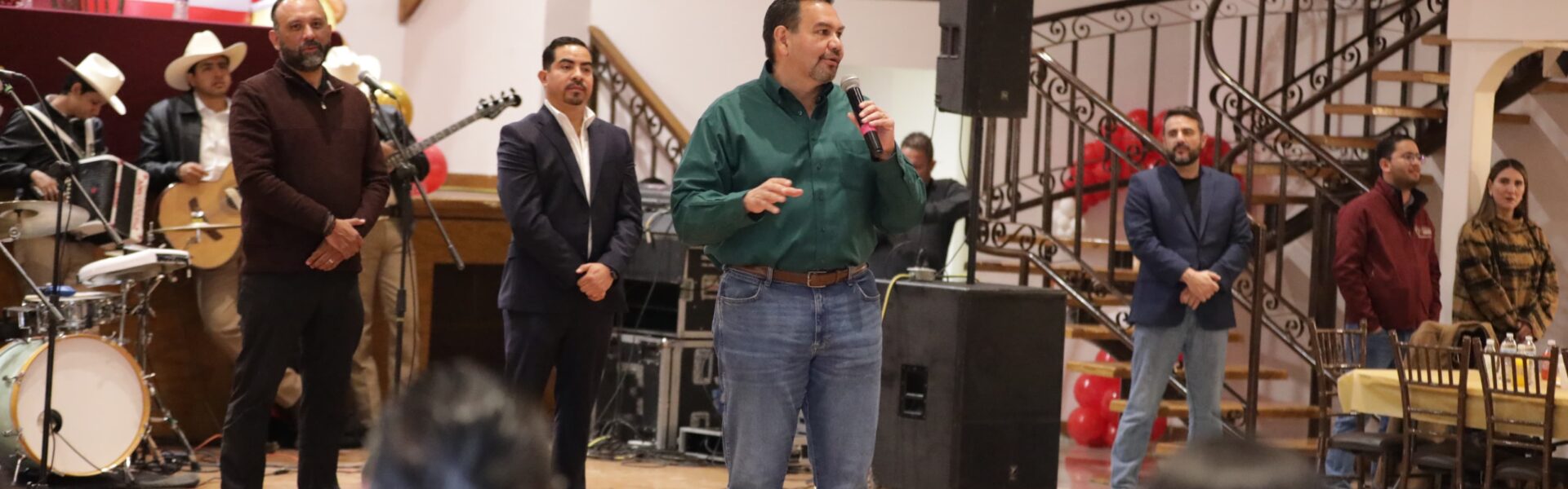 Ciudad Juárez, Chih., El Presidente Municipal Cruz Pérez Cuéllar asistió a la posada organizada para líderes de diversos mercados de la ciudad en las instalaciones del Sindicato Único de Trabajadores Municipales. Durante el encuentro destacó la relación cercana que el Gobierno Municipal mantiene con los locatarios mediante la Dirección de Regulación Comercial, lo que ha permitido fortalecer la comunicación y el trabajo conjunto.